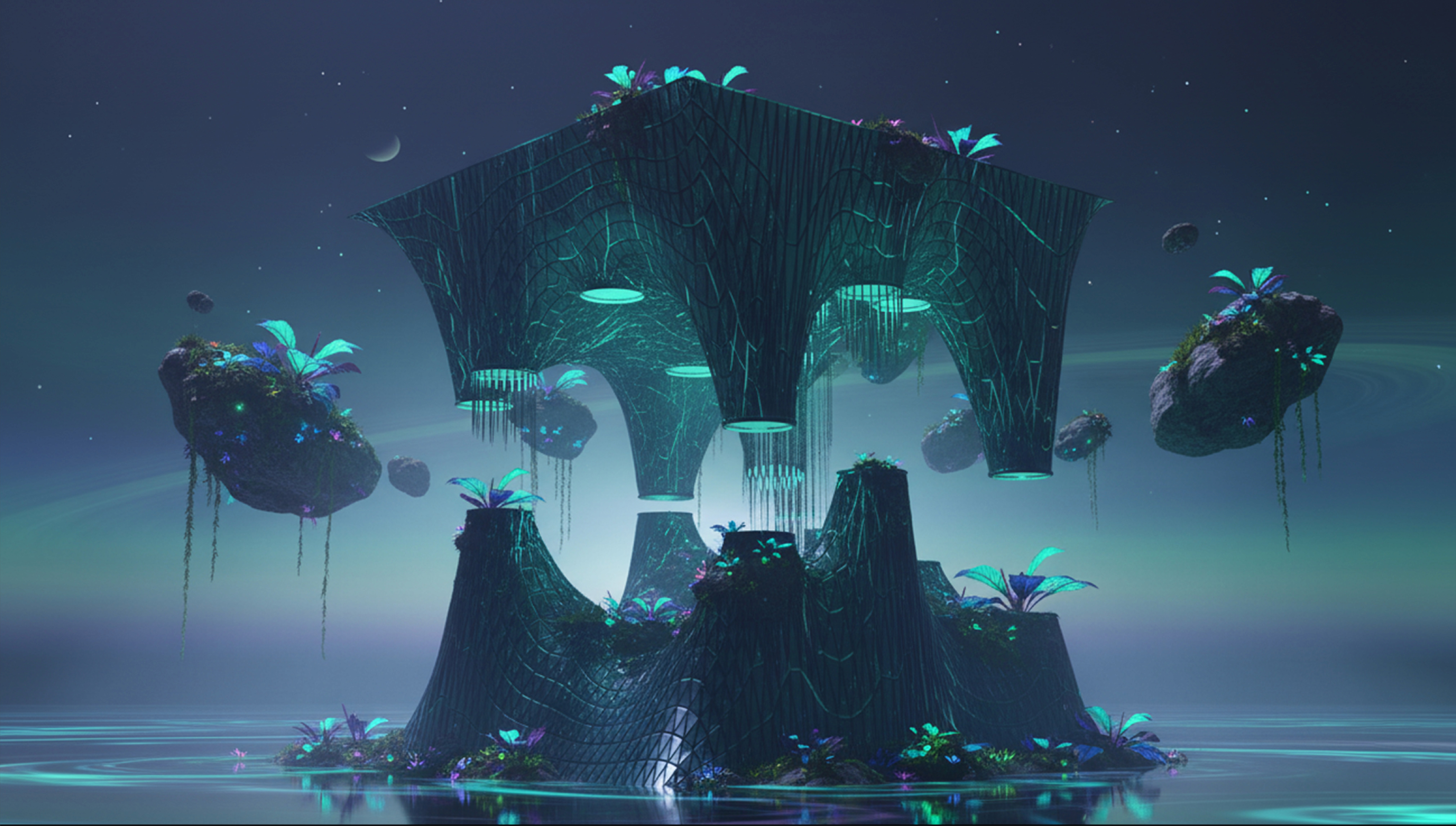Oasis is a Harvard GSD project exploring a hybrid physical–digital design methodology. Combining hand modeling, AI visualization, digital simulation, and 3D printing, the project constructs a speculative ecosystem inspired by floating, bioluminescent landscapes. It investigates how iterative, multi-layered processes can generate immersive architectural environments that blur boundaries between natural growth, fabricated form, and atmospheric world-building.